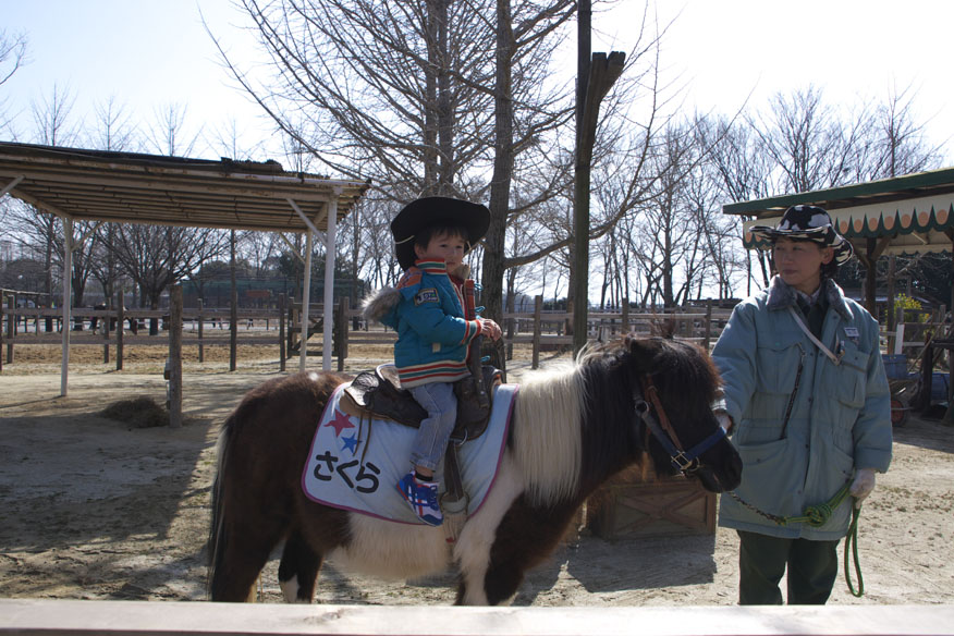 とりあえず、息子をポニーに乗せました。