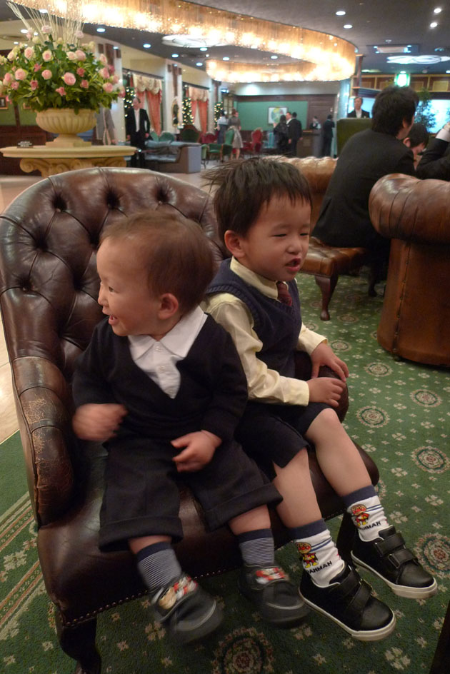 待合室にてくつろぐ息子たち。というか1階ロビー。