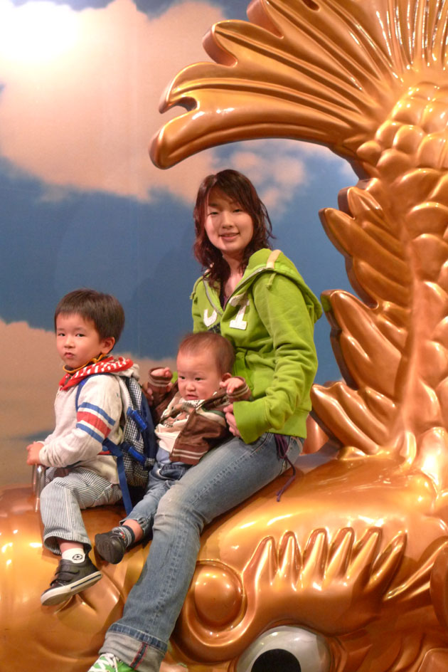 5階に戻ると、しゃちほこに乗れるっていうんで、早速並んでのっかってきました。
