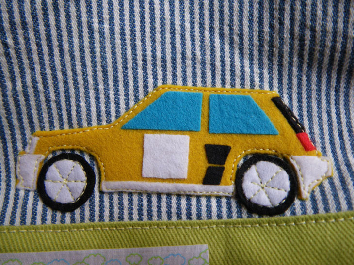 窓を上から貼り付けて、ステッチは車の周りだけです。
