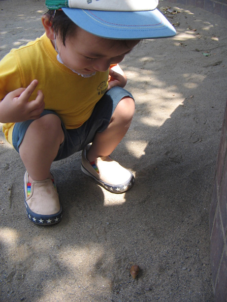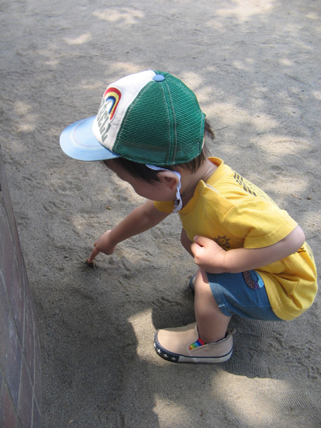 蟻やら蝶やらは指差して教えたことはあったけど、こいつなら触らせれるぞ?と思ったので、触れることを教えてみた。