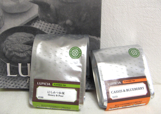 今回買ったのは旦那の選んだ「はちみつ和梨」という焙じ茶と、私の選んだ「カシス&ブルーベリー」という紅茶です。