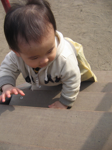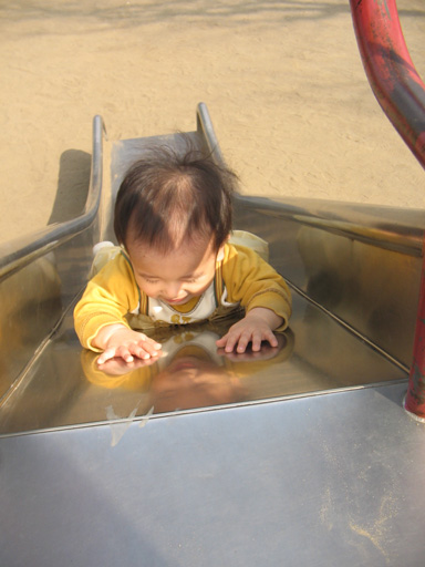 階段登って…バックですべり台に・・・「シューッ」と言いながら滑ります。