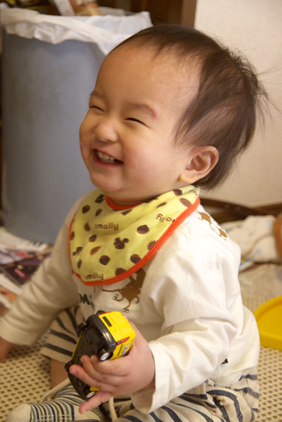 息子はいつもより大きめのミニカーに大興奮。
