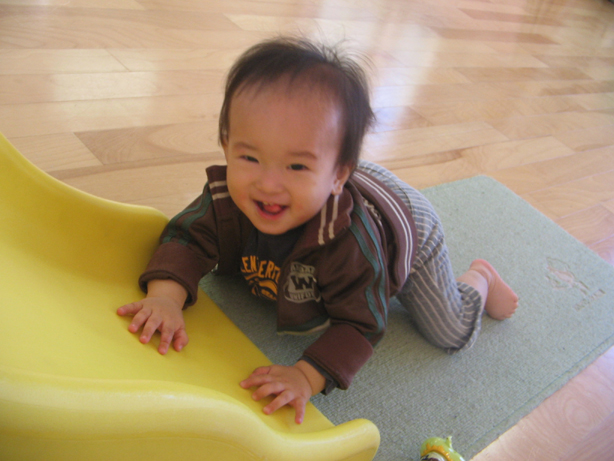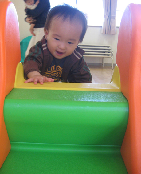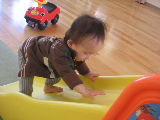 児童館に小さなすべり台があるのですが、最近滑る方から登る事を覚えました。