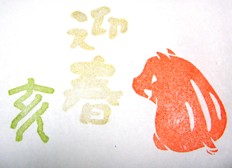 真ん中は迎春。年賀状用に一つ。金色のインク。