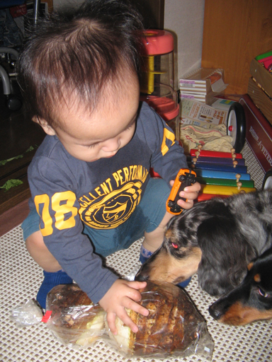 息子にはちょーっと重たいようで、持ち上げられなくて悔しそうでした。