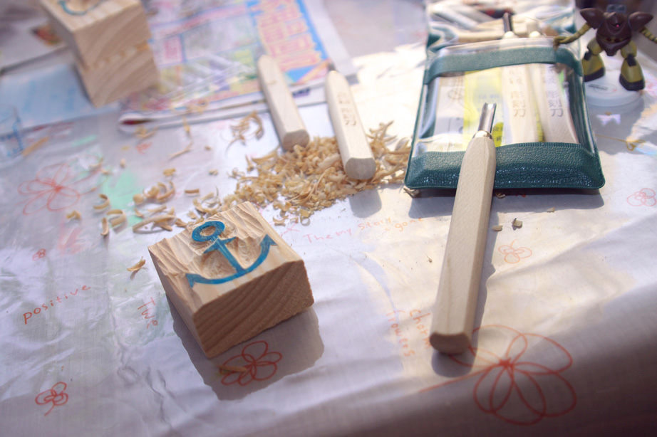 豚にウサギに碇型。文字にわんこにと、次々に彫っていってます。